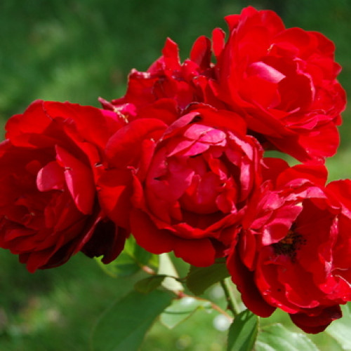 суцвіття складаються з декількох великих квіток, насичено червоного кольору, махрових, до 10 см у розпуск;