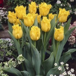 Жовтий тюльпан Hamilton (Гамільтон) — граційна і велична квітка, неповторна своєю густою, схожою на кристали, бахромою. Завдяки їй пелюстки не розкриваються широко навіть у сонячну погоду, тим самим зачаровуючи вас своєю ніжністю. Надає весняним квітникам додаткової яскравості й добре гармонує з іншими видами весняних квітів.