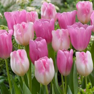 Тюльпан триумф Infinity (Инфинити) – сорт с нежнейшей кремово-розовой окраской, такой привлекательной для романтичных натур. Когда бутоны формируются – они чисто белые. По мере их роста, на них начинают проступать нежные, словно акварельные розовые росчерки. В полном роспуске – края лепестков становятся густо розовыми. Словно стая фламинго отдыхает на вашей клумбе.