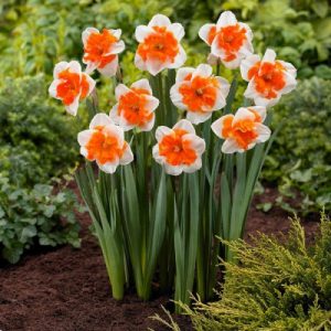 Кольорові нарциси Orangery володіють ексклюзивною спліт коронкою, яка на тлі білосніжної оцвітини розрізана на шість сегментів з трохи гофрованими краями. Пелюстки білі, а коронка помаранчева — виглядає святково і яскраво. Нарциси прекрасні в масивах, на клумбах відмінно поєднуються з тюльпанами, лакфіоллю, іберисом, іншими сортами виду. Бульби добре ростуть в діжках і горщиках, що розширює можливості ландшафтних дизайнерів і флористів. З якісними цибулинами від інтернет-магазину Яскрава можливі будь-які квіткові композиції.